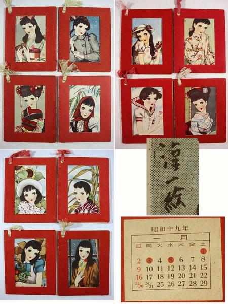 <昭和十九年 中原淳一 版画 カレンダー付 栞 娘十二ヶ月揃>